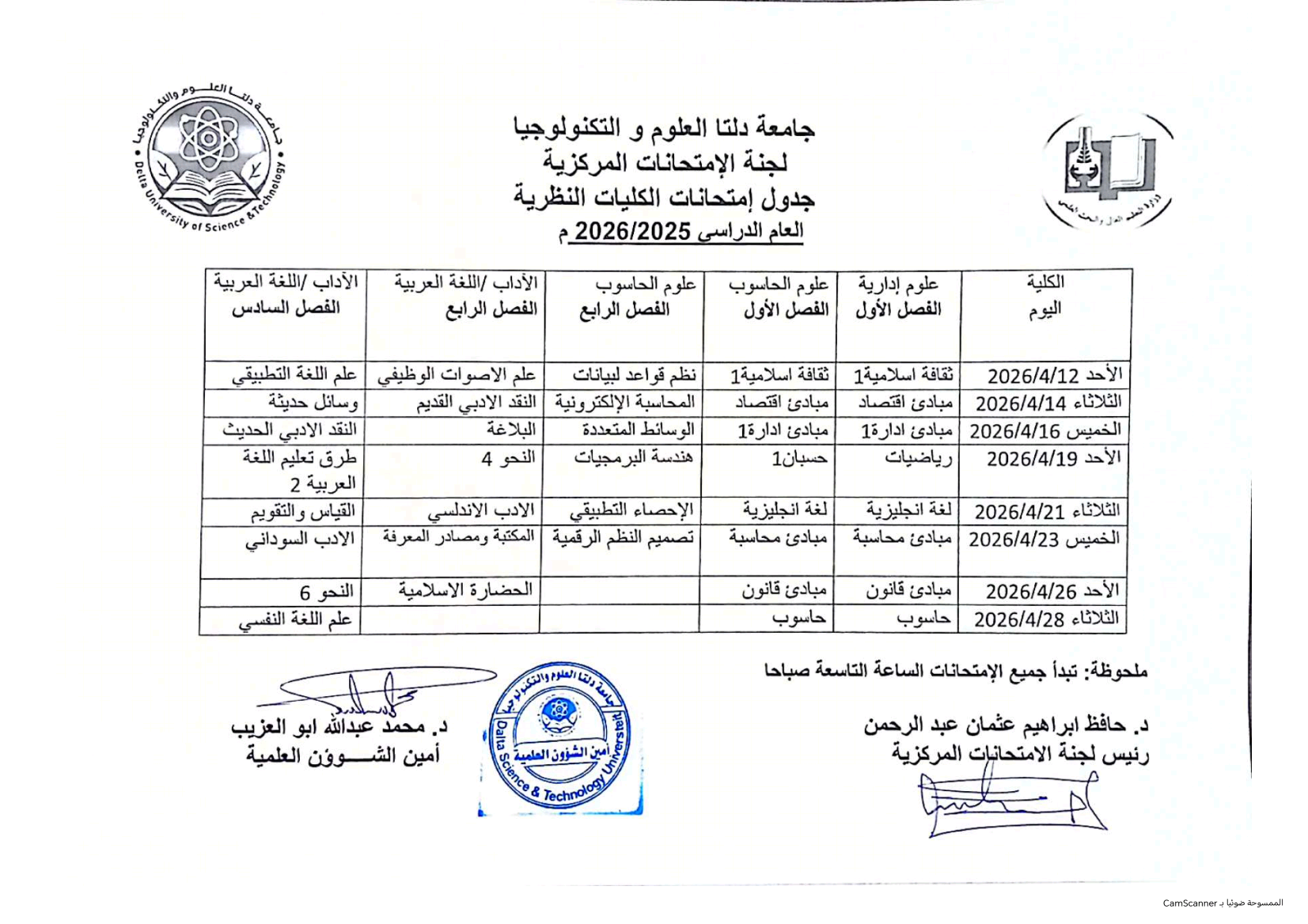 جدول امتحانات الكليات الإنسانية للعام الدراسي 2025/2026م