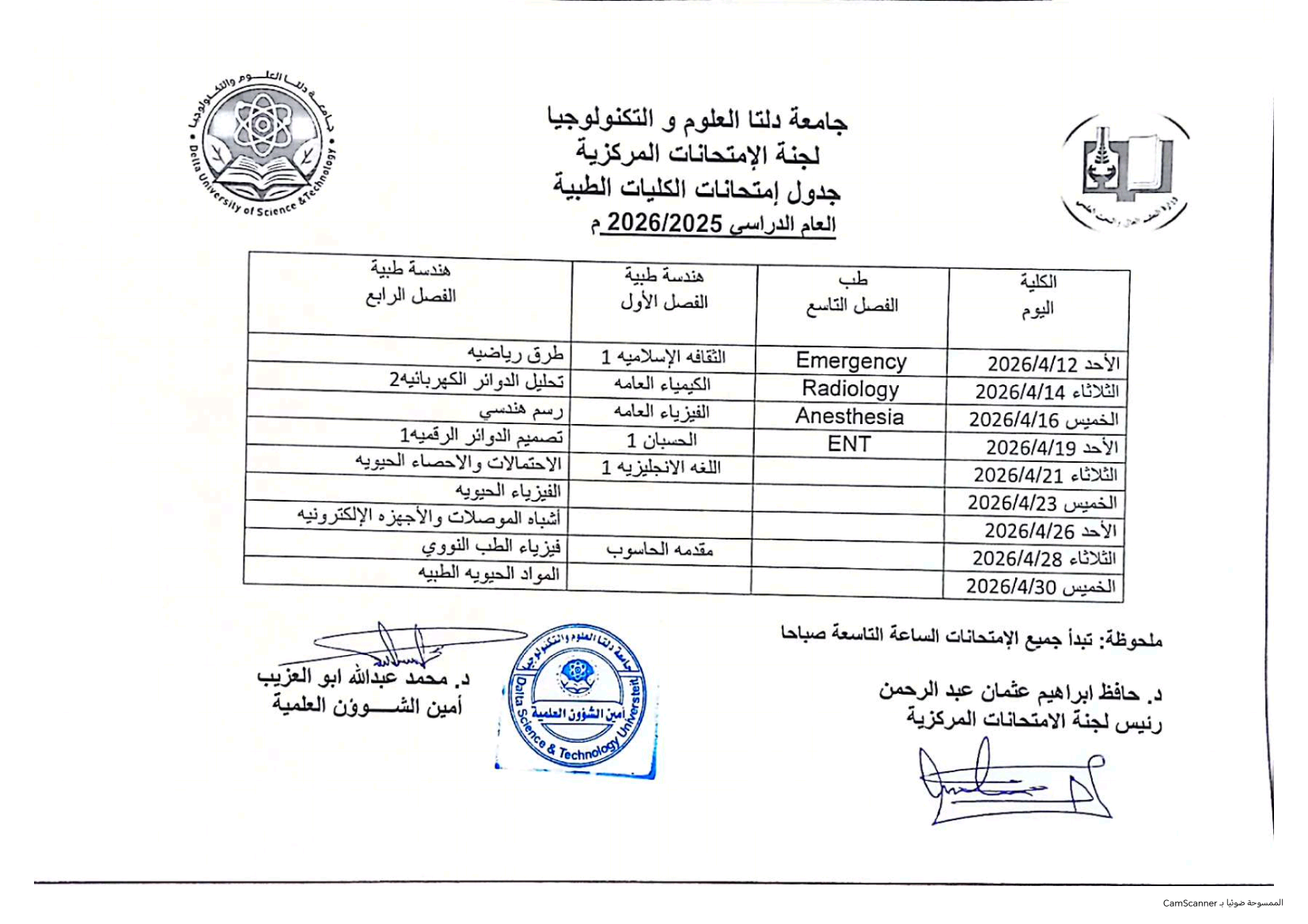 جدول امتحانات الكليات الطبية للعام الدراسي 2025/2026م