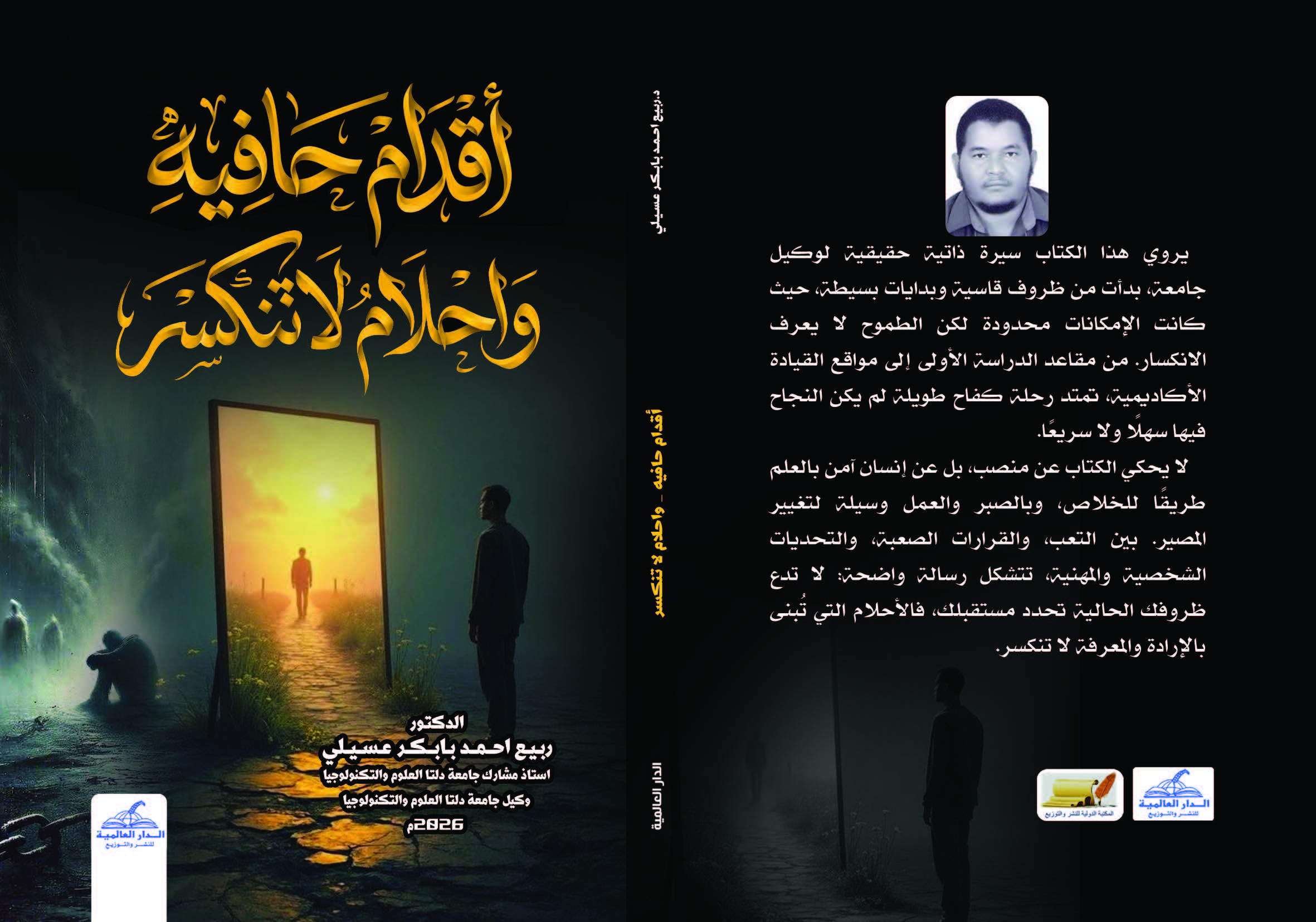 جامعة دلتا تاريخ بناء ومسيرة عطاء جاء عنوان كتاب « جامعة دلتا تاريخ بناء ومسيرة عطاء» معبّرًا بصدق عن رحلةٍ ثرّةٍ بالعمل والتضحيات، وهو من تأليف د. ربيع أحمد بابكر عسيلي، وكيل جامعة دلتا العلوم والتكنولوجيا، وصحبه د. محمد موسى أحمد. كتابٌ لا يكتفي بسرد الوقائع، بل يوثّق لتجربةٍ مؤسسية رائدة كُتبت بالإصرار والتخطيط والرؤية. يحكي الكتاب عن مسيرة دلتا منذ النشأة الأولى كفكرةٍ طموحة، مرورًا بمراحل البناء والتحديات، والتوسّع الأكاديمي والإداري، وصولًا إلى محطة الترفيع إلى جامعة، بوصفها ثمرة طبيعية لمسارٍ طويل من العطاء والانضباط المؤسسي. كما يبرز أدوار القيادات والعاملين، ويستعرض محطات مفصلية شكّلت وجدان المؤسسة ورسّخت مكانتها في التعليم العالي. ويمثل الكتاب شهادةً للتاريخ، ومرجعًا مهمًا للباحثين والمهتمين بتجارب بناء المؤسسات التعليمية في السودان، ورسالة إلهام تؤكد أن النجاح لا يُولد صدفة، بل يُصنع بالصبر والعمل والإيمان بالفكرة.