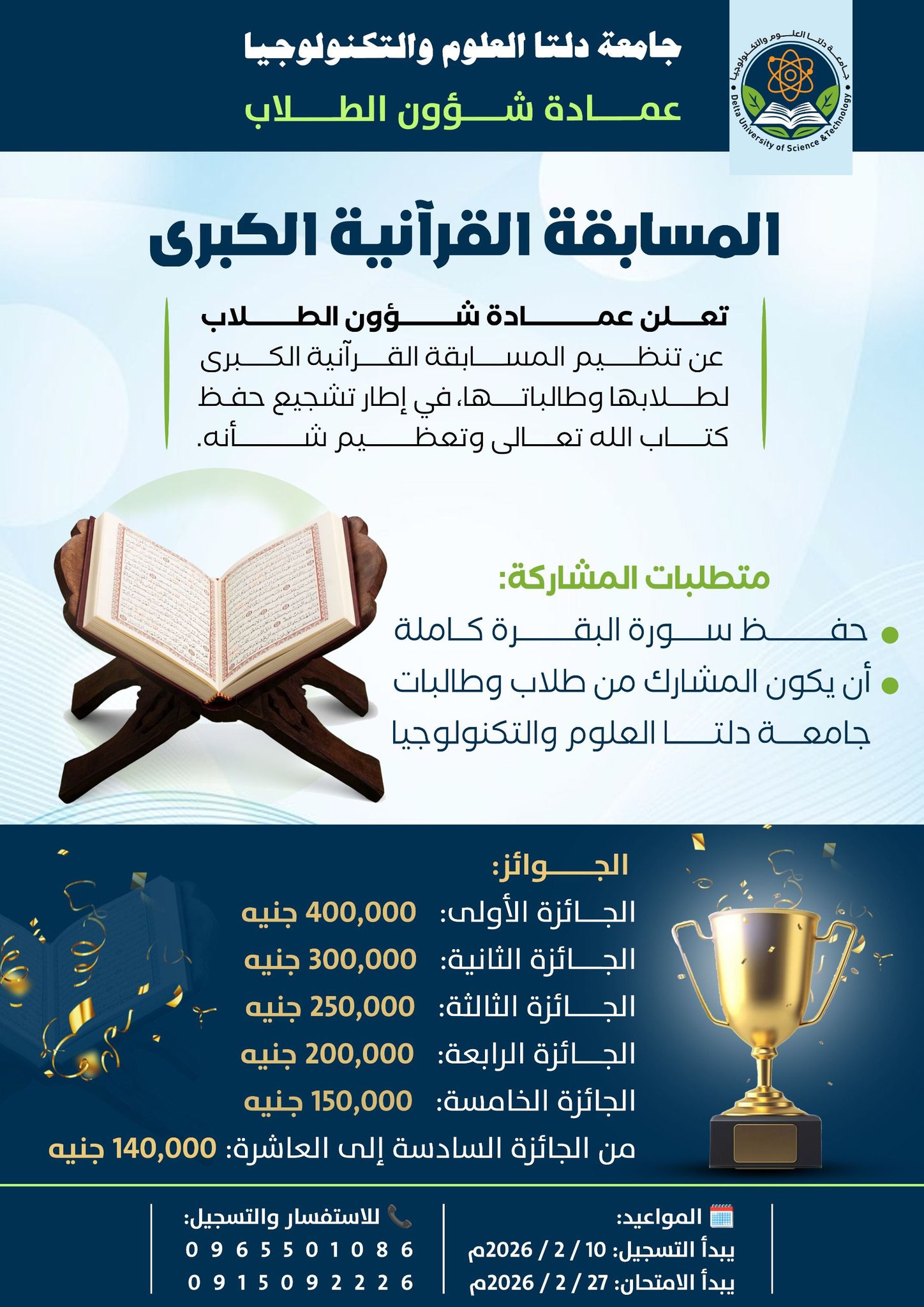 جامعة دلتا تطلق المسابقة القرآنية الكبرى بجوائز مالية قيمة